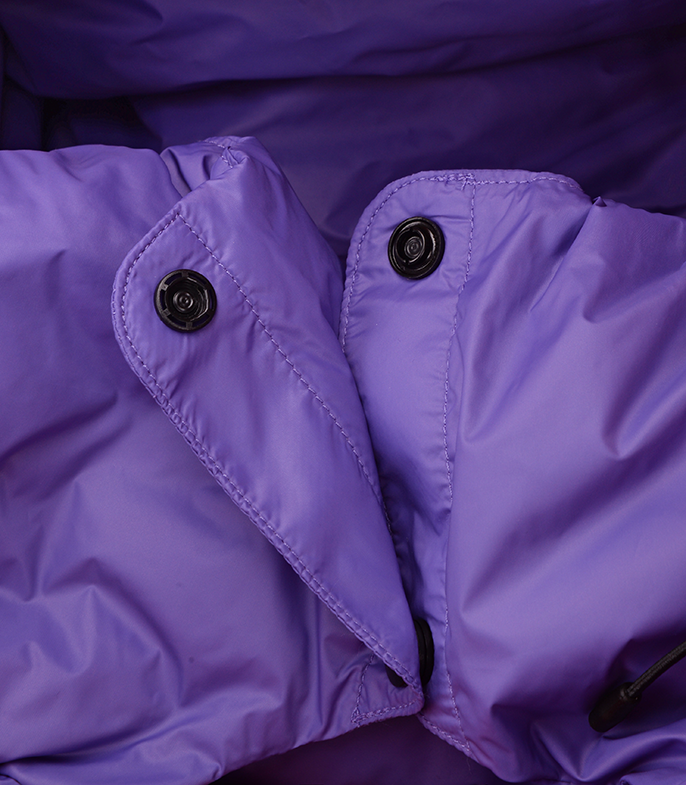 Капюшон с теплым пуховым тубусом и регулировкой размера лицевого отверстия эластичным шнуром.