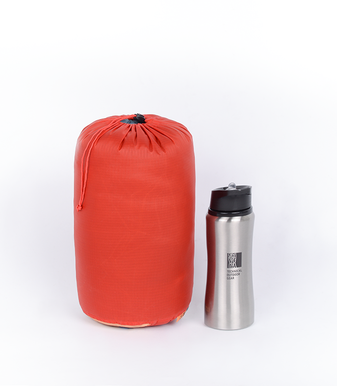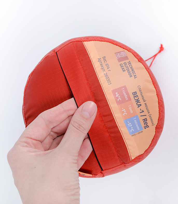 Упаковочный объём Вежа -1 Long - 34x17 см в штатном упаковочном мешке, при использовании опционального компрессионника может быть сжат вдвое компактнее.