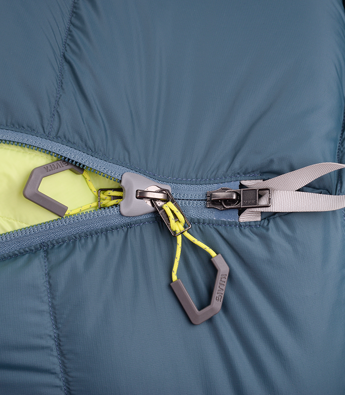 Полная разъемная боковая молния с объёмной внутренней планкой и возможностью соcтёгивания с мешками Сивера аналогочной конструкции в любом размере.