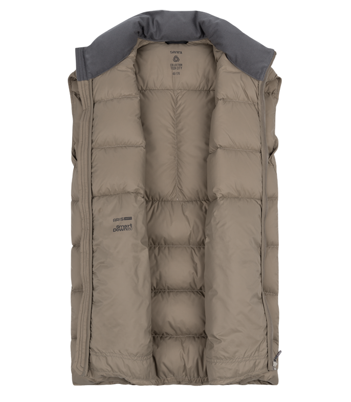Тёплый мужской пуховой жилет универсального назначения. Тектон послужит отличным вспомогательным утепляющим слоем на биваке или привале при занятиях альпинизмом, туризмом, а также придется кстати как элемент стиля современного горожанина. Жилет изготовлен из легкого пуходержащего нейлона A'ris 20 RS Matt отличающегося матовым внешним видом, неприхотливостью, он мягкий и приятный на ощупь и более тихий, чем аналогичные артикулы спортивного назначения. Тектон утеплен превосходным пухом SmartDown с Fill Power 850. Новая модель выделяется новой конструкцией с нестандартным расположением пуховых отсеков, которая повышает функциональность изделия. Обработки пройм рукавов и низа также позволяет сформировать современный силуэт и успешно применять жилет в повседневной носке и совмещать его с подлежащими слоями. Тектон отличается отличными теплоизолирующими свойствами, небольшим весом и оригинальным дизайном.