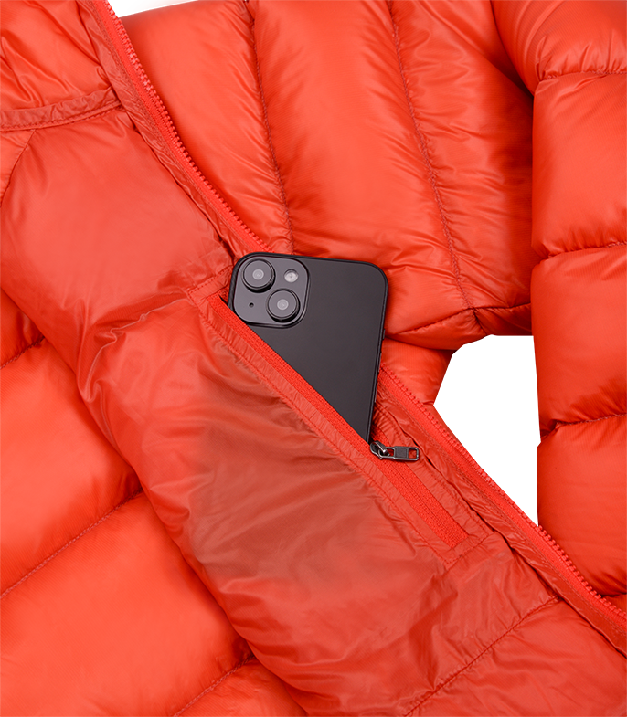 Благодаря сочетанию ультралёгких пуходержащих тканей, высококачественного гусиного пуха и минималистичного подхода к обработке деталей куртка впечатляет низким весом и скромным объёмом в упакованном виде.