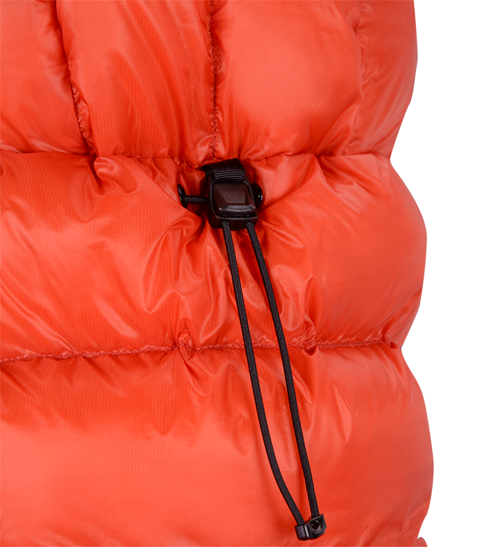 Регулировка объёма куртки по низу эластичным шнуром с фиксатором.