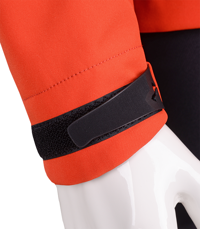 Два приподнятых боковых кармана совместимы с поясом рюкзака и страховочной системой, а регулируемые манжеты на велкро и капюшон с высоким воротником добавляют удобства в ветреную погоду.